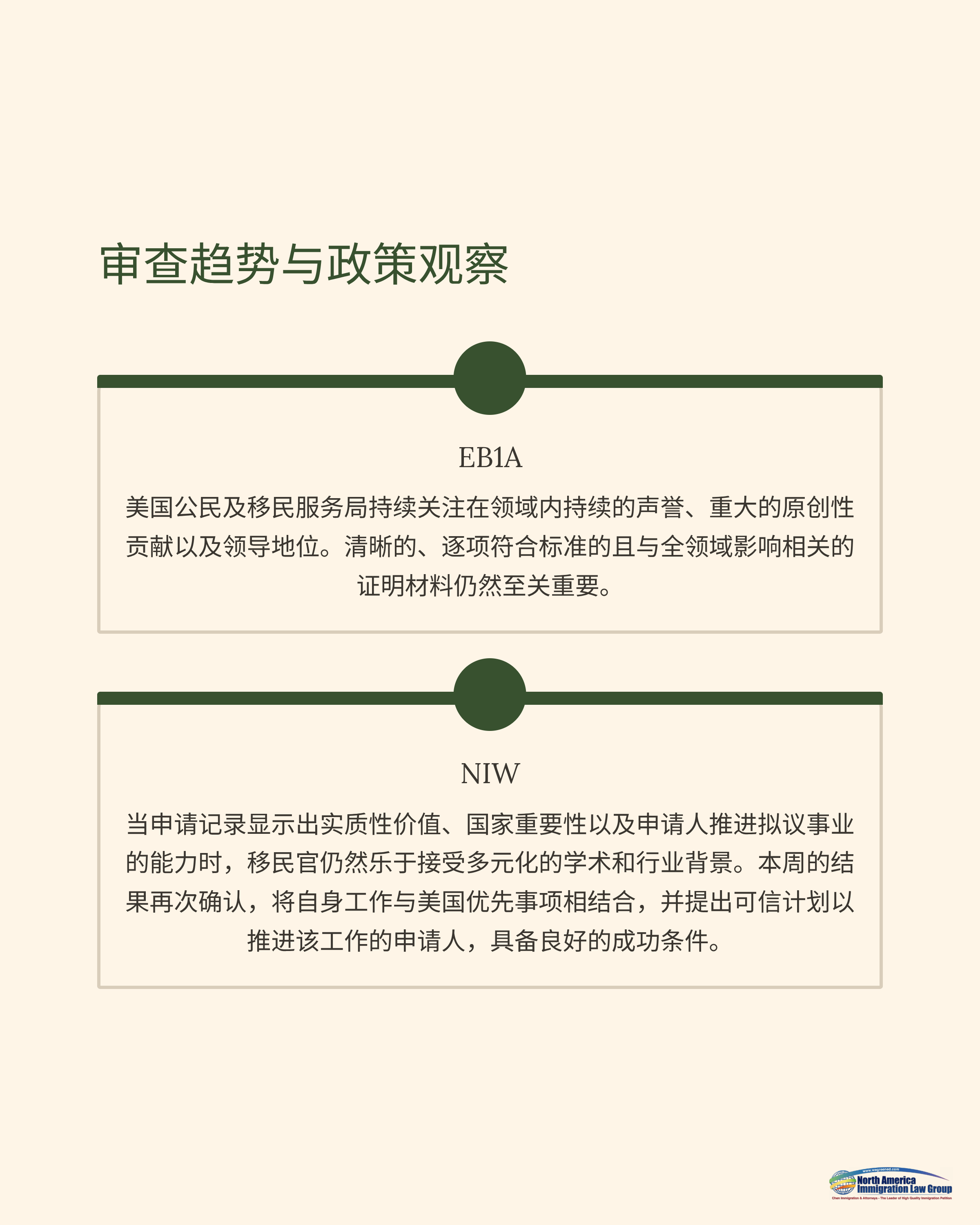 NIW:保持灵活审理取向,认可多元学术与产业背景,只要能够证明工作具有实质价值与国家重要性,并显示申请人有能力推进其工作。